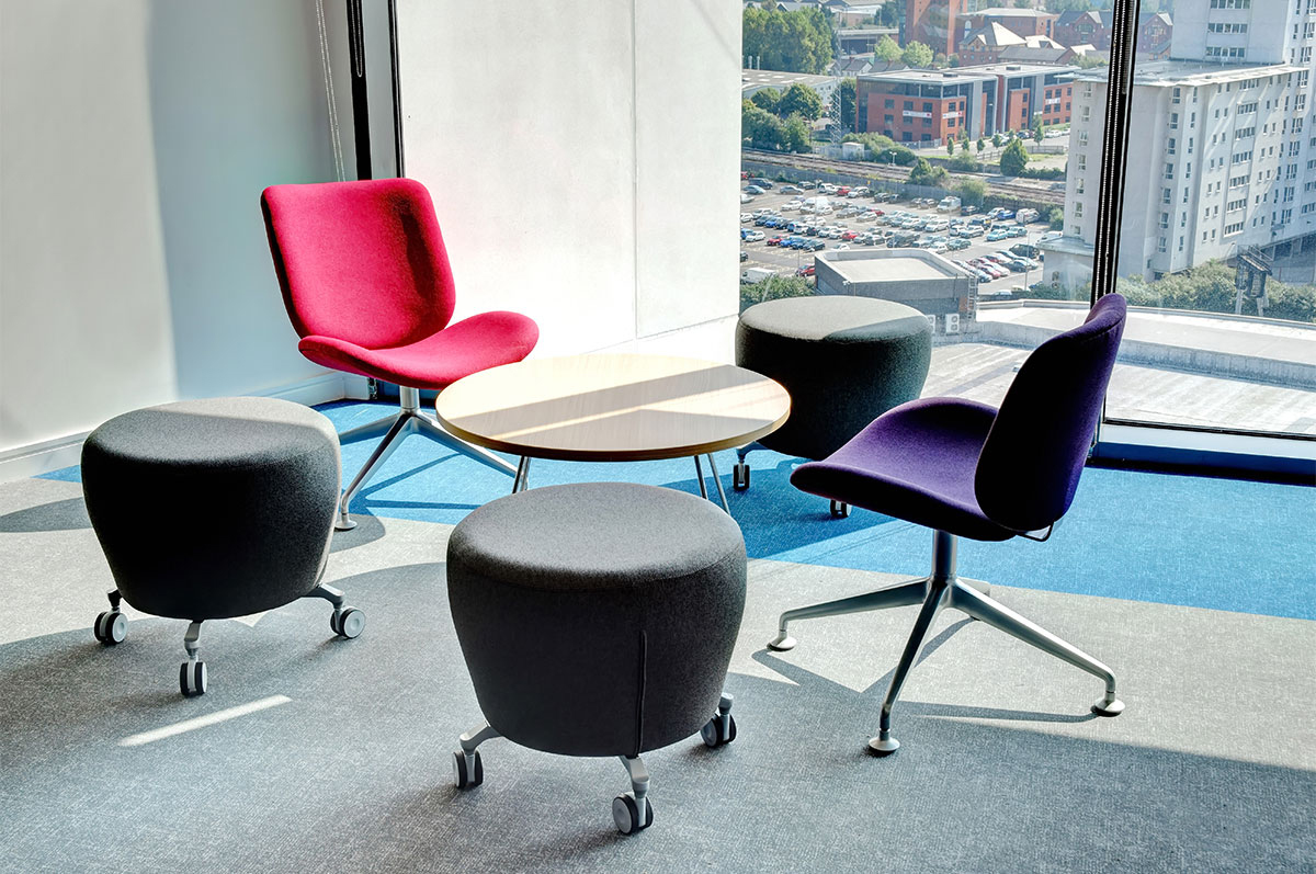 Part of the project revolved around the reuse of some of the existing furniture stock that Admiral had been using successfully for many years. Flexiform worked over two new sites in Newport and Cardiff, plus five existing sites, to combine this existing stock with new products.