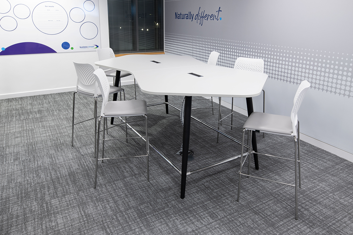 Utilising the original Pico white bench desks which were 13 years old, we matched additional furniture with white tops and added a splash of colour by bringing blue and grey fabrics and black and chrome accents. The result is a fantastic contemporary, comfortable and inspiring office space which will last Business Stream for many years to come.