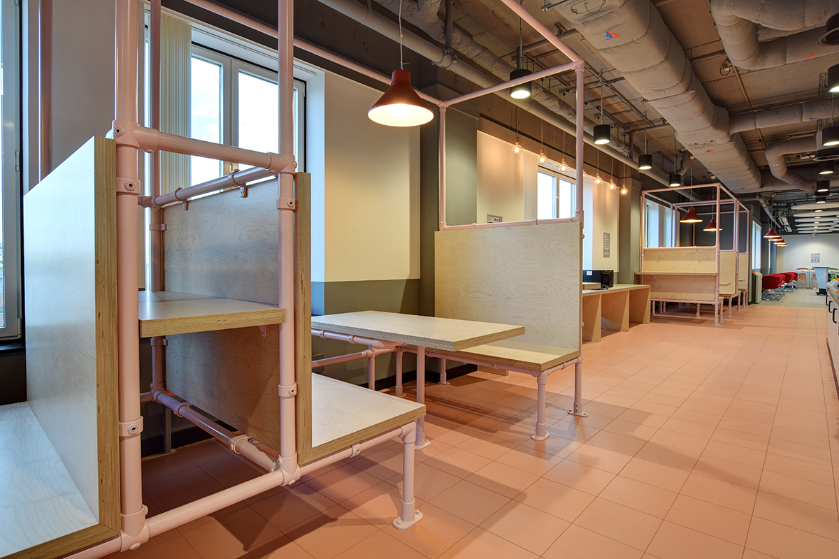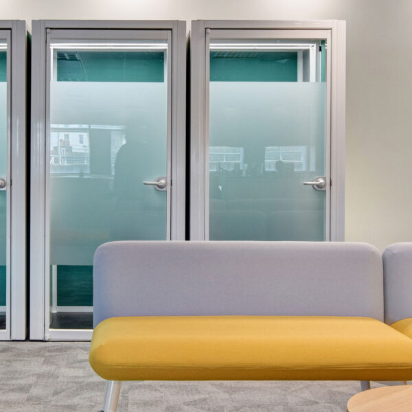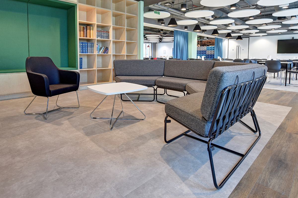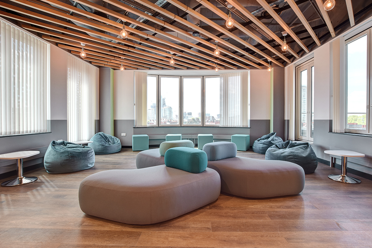 Opting to move away from “standard” furniture we had previously installed for their other offices, the client chose a wide range of smart working furniture including bespoke tables, modular sofa systems (with huddle spaces), built-in seating, meeting booth and low pouffes. After product testing some of our versatile seating ranges (including the Miss stool and Valido lounge chair) the client opted to install them throughout the building. A large range of furniture was also specified with antibacterial surfaces including paint finishes and fabrics.