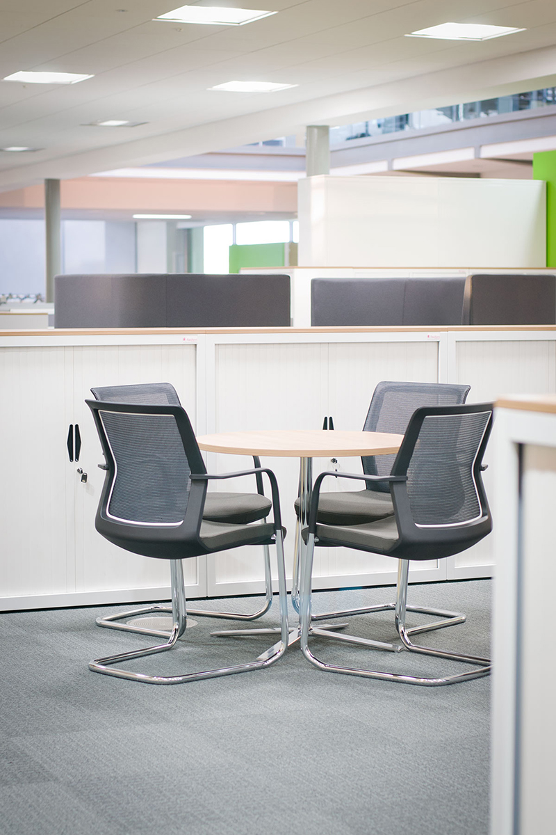 The task seating supplied was selected to accommodate the needs of the vast majority of council employees, to minimise the need for specialist seating, and to support the use of a new hot-desking approach. Breakout and meeting spaces were designed to provide flexible and collaborative spaces, with the use of a number of products, including tables and chairs, which can be easily reconfigured to create a multi-functional space without the need for intervention by the Council’s estate team.