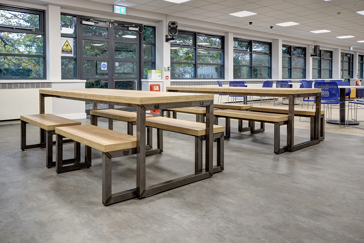 Flexiform has completed the installation for Collingwood College’s 6th form canteen. Designed by our in-house space planning team, the contract furniture installation featured numerous comfortable dining and breakout spaces including soft seating, bar height tables and bench tables in hard-wearing finishes and vinyl.