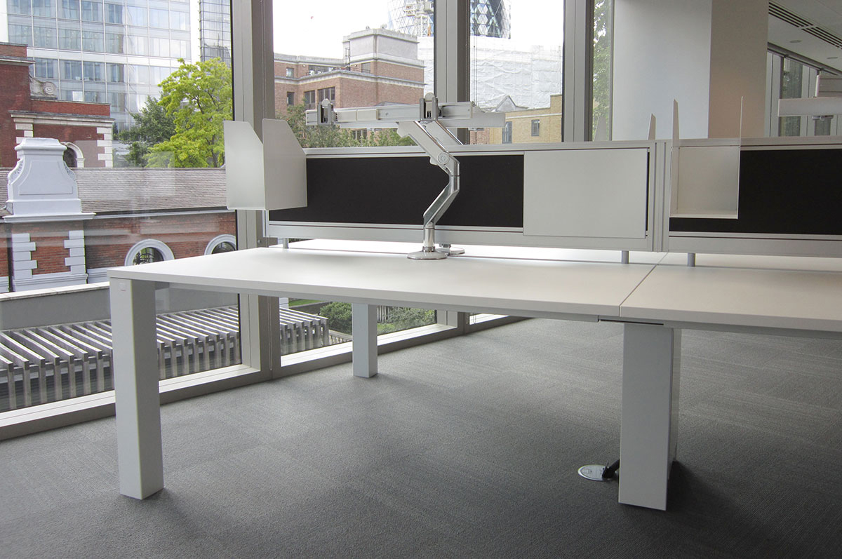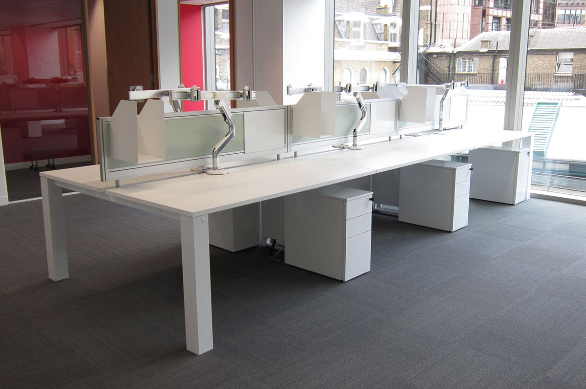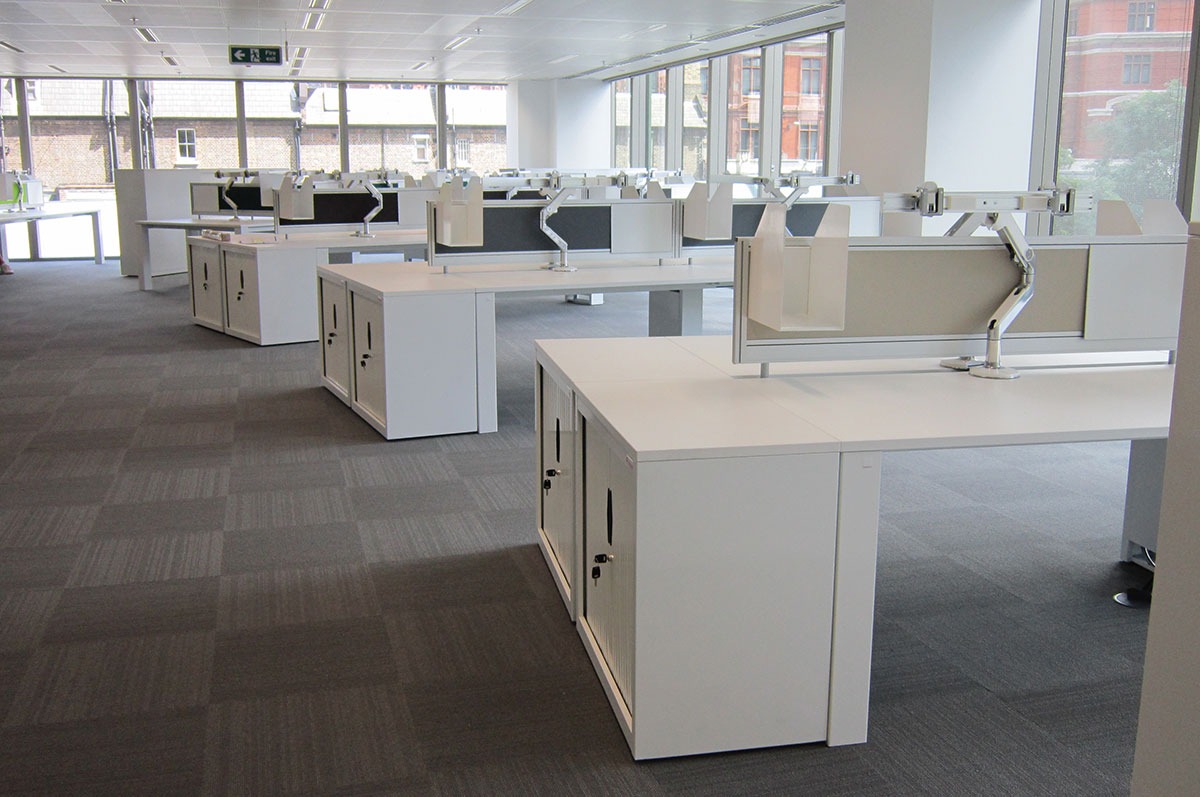 Flexiform completes the recent office installation of CreditSights, a leading independent research provider. Working alongside JAC Interiors, Flexiform supplied and installed a range of office furniture designed to improve the organisation, workflow, and storage potential. Freestor storage, Jot desks, screens, slim-line pedestals, CPU holders and monitor arms were selected by CreditSights, with each item having a clear purpose within the company’s workspace. Securely locking pedestals were installed to encourage secure, organised filing. The fabric and plexiglass screens, for example, featured an integrated tool rail to hold accessories. CreditSights selected box file holders that would allow staff to organise their desks efficiently – essential in both the research and finance sectors in which the client works. Whiteboards were also incorporated into screens for taking notes.