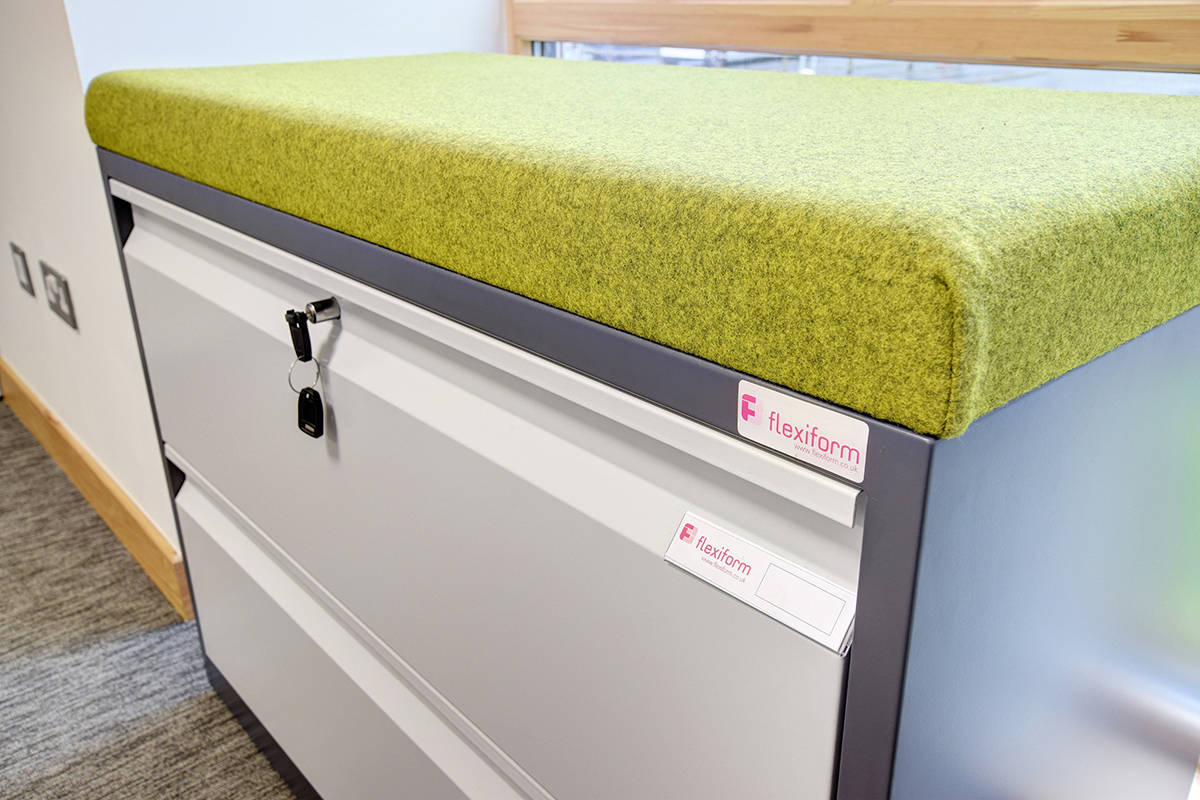 Flexiform’s team of Space Planners and Storage Surveyors consulted each department to provide input on the layout and feel of their workspace, with three different styles of Pico bench desks provided. Rectangular, double wave, and individual workstations were installed to suit the specific needs of each department. All desks were provided with a full IT setup, including CPU holders and monitor arms, taking advantage of Pico’s cable management trays. Some side filer storage was specifically designed to include a bespoke upholstered top, which offers an additional seating position for breakout meetings and discussions amongst staff. Finally, Additions 2 tables with A3 painted legs were provided as meeting tables, with the clean, minimalistic finishes complimenting this stylish installation.