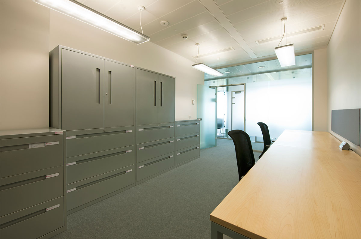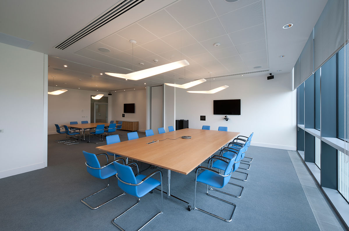 Flexiform has supplied each room with desking, with various sizes and configurations to fit the room – and the company’s needs. Each desk has a sliding top to incorporate a cable management system. Task seating was supplied along with various Jot lateral storage units.