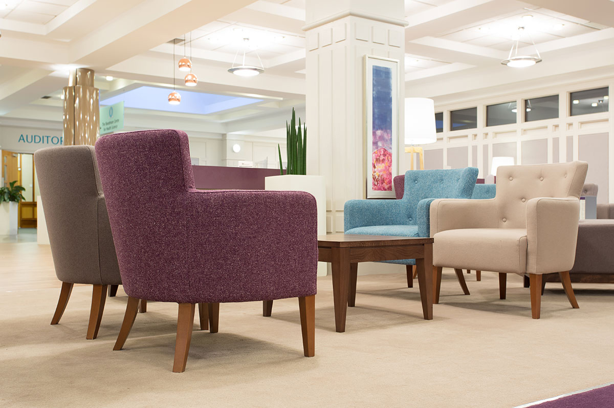 Working with JM Architects, Flexiform delivered and installed chairs in Camira Hemp, a natural fabric that suited the Golden Jubilee Conference Hotel’s natural ethos. The legs and coffee tables were supplied in dark rich wood to add to the luxurious feel. Flexiform project-managed this installation to ensure all chairs from a range of manufacturers were delivered together and were to the customer’s specification.