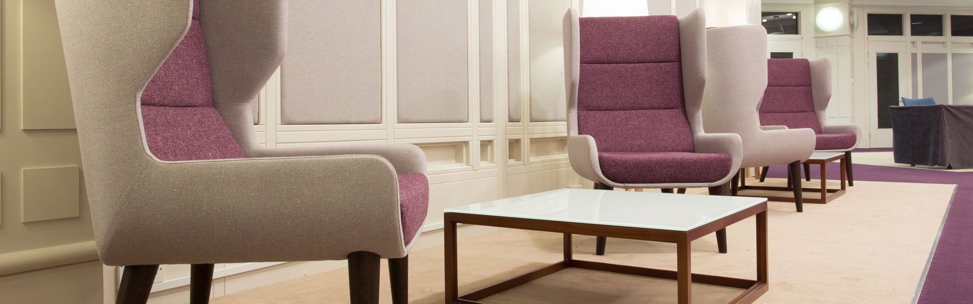 A team from the Golden Jubilee Conference Hotel visited Flexiform’s Livingston showroom along with the interior designer JM Architects; here we presented suitable products in line with JM’s scheme. The high back chairs offer the hotel guests comfort and privacy, while smaller chairs, in their natural wool fabric, offer an inviting place to relax and have coffee. The ‘before’ and ‘after’ styles on the project were dramatically different, with many returning hotel guests impressed with the changes.