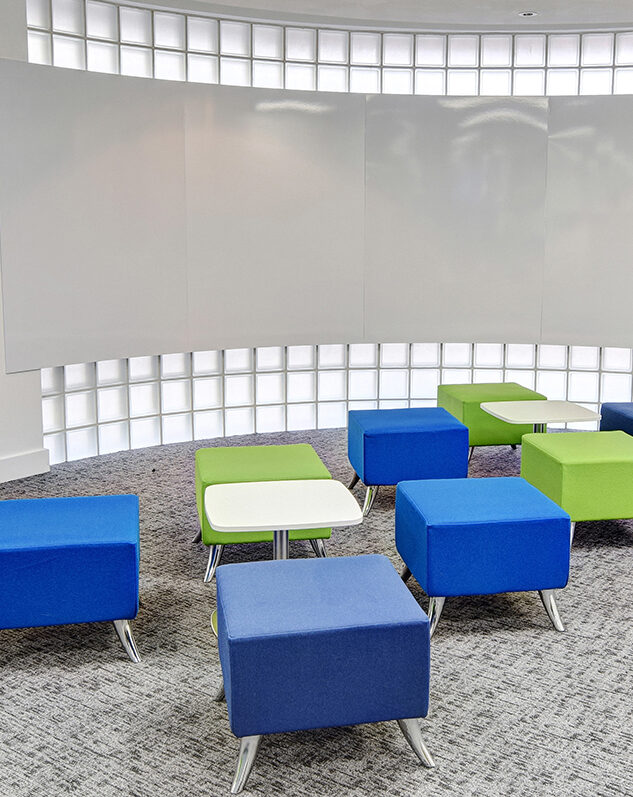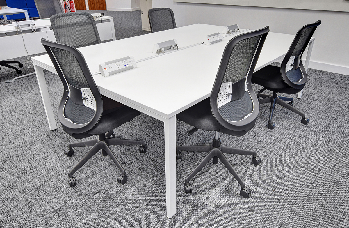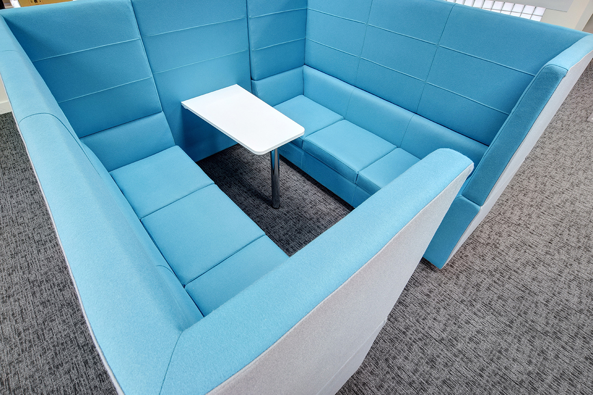 Flexiform manufactured and installed office desking and collaborative seating in this Government Agency building. Flexiform used our UK wide installation teams to install this furniture to customer supplied plan. Pico Desks were installed for traditional desks as they can be configured as single, side-to-side and back-to-back desks, suitable for the unique layout Government Agency requested. The desks were supplied without screens to encourage staff collaboration. High back seating booths, reconfigurable pouffes and corner seating were also installed for informal meeting zones.