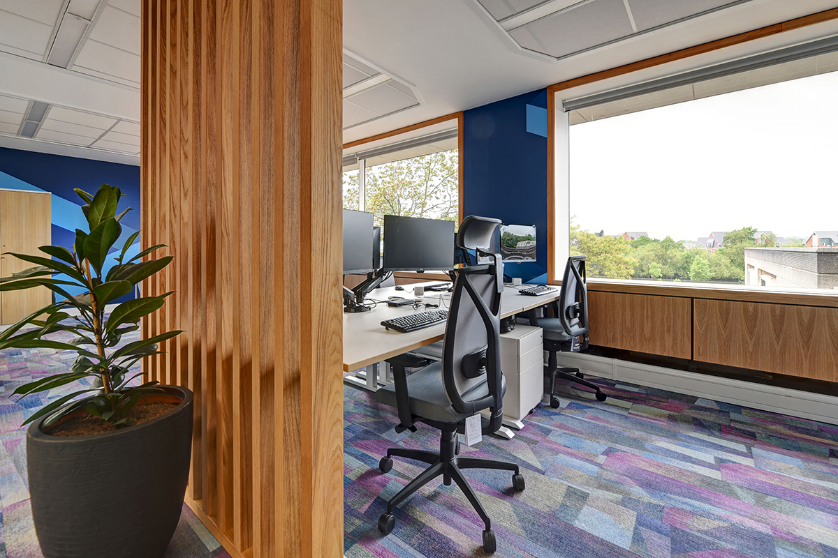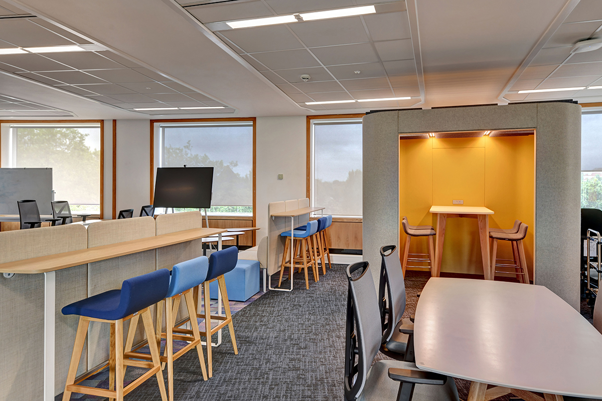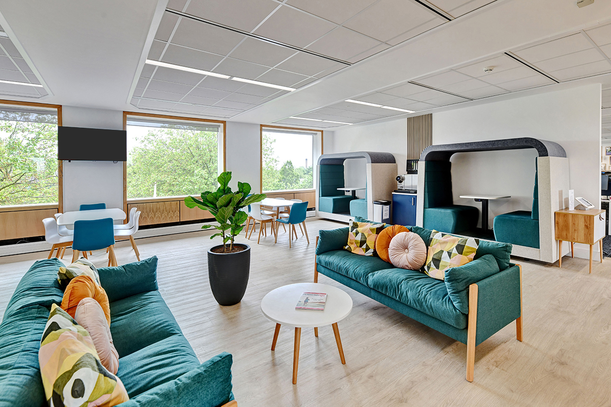 The Client had a clear vision for their new office space: to create a functional and effective workspace that was welcoming, homely and vibrant to entice staff back into the office post-COVID-19. They wished to embrace hybrid working, wellbeing and inclusive interior design to suit all members of staff and their needs. With the support of Branding, Marketing, the organisation’s Network Groups and Internal Communications teams, all staff were involved throughout the process creating a fantastic office interior embraced by all.