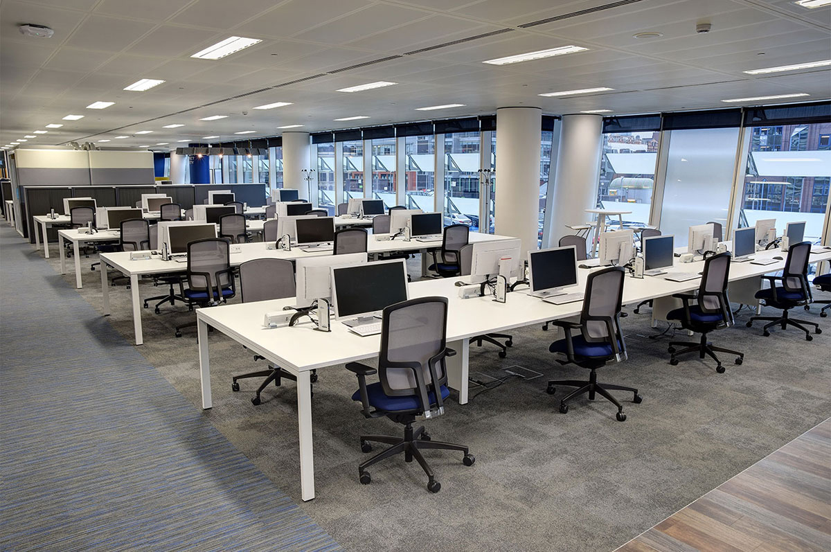 Using reflective learning from the earlier HS2 office furniture installation, a revised furniture specification was created to incorporate the different needs of the Snow Hill space while also mirroring the look and feel of the Canary Wharf offices to ensure the corporate branding of the space was maintained.