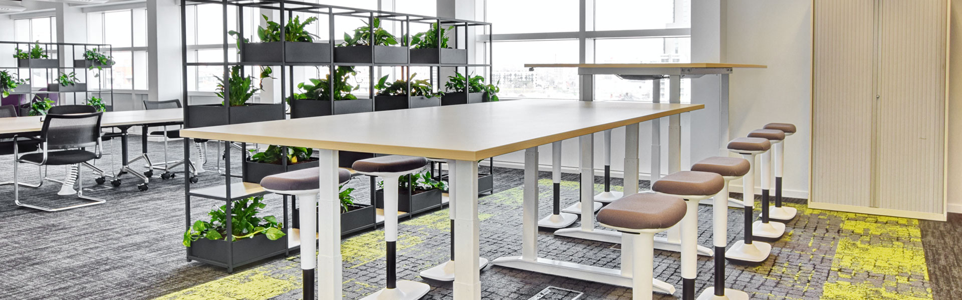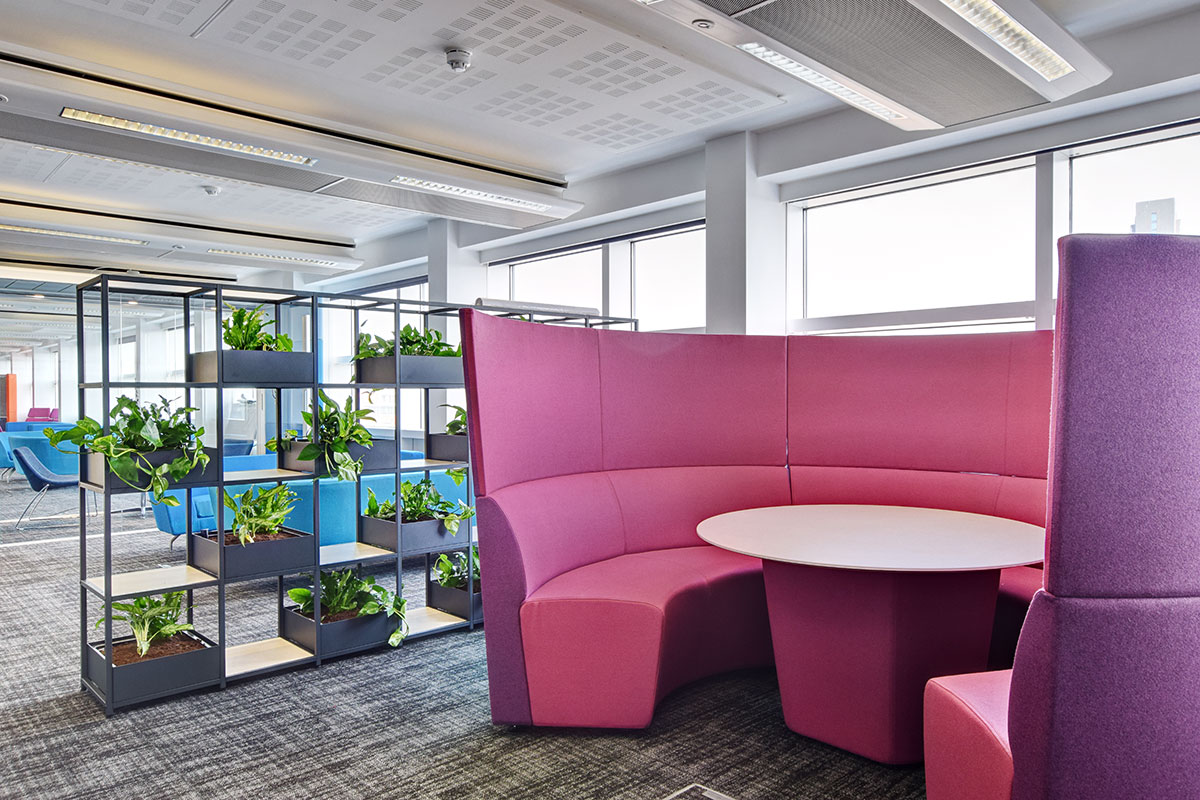 Within the office furniture installation, we installed a range of FlexiGrid display shelving to divide workspaces without completely shutting them off, giving staff more privacy and comfort. The FlexiGrid bookcases were installed with shelving and integral planters, enhancing the existing biophilic touches and increasing staff wellbeing. Together we managed to achieve a Smart Working flexible workspace, achieving Highways England’s goals to increase staff wellbeing and productivity. Scroll down to see more Highways England projects.