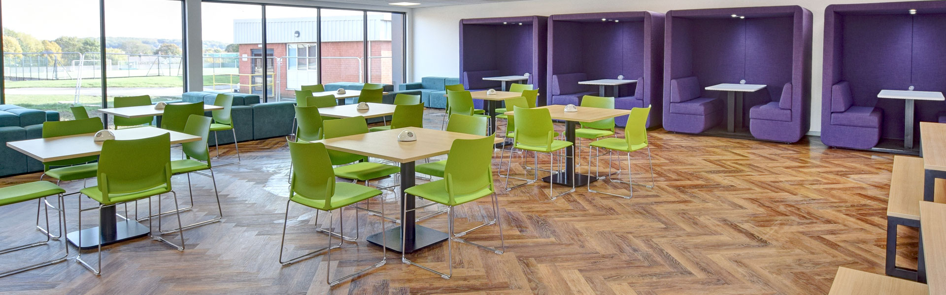 Flexiform completes a local installation for Horsforth Secondary School & Sixth Form, creating a stylish new canteen, working area, and breakout area for the 6th form students. The flexible workspace provided a comfortable and informal area for the students to meet, chill out, eat, collaborate and work on projects. Flexiform specified all products in line with the school’s brand colours; Purple and Green, all products featured have been specified with longevity in mind, using only hardwearing, easy clean materials.