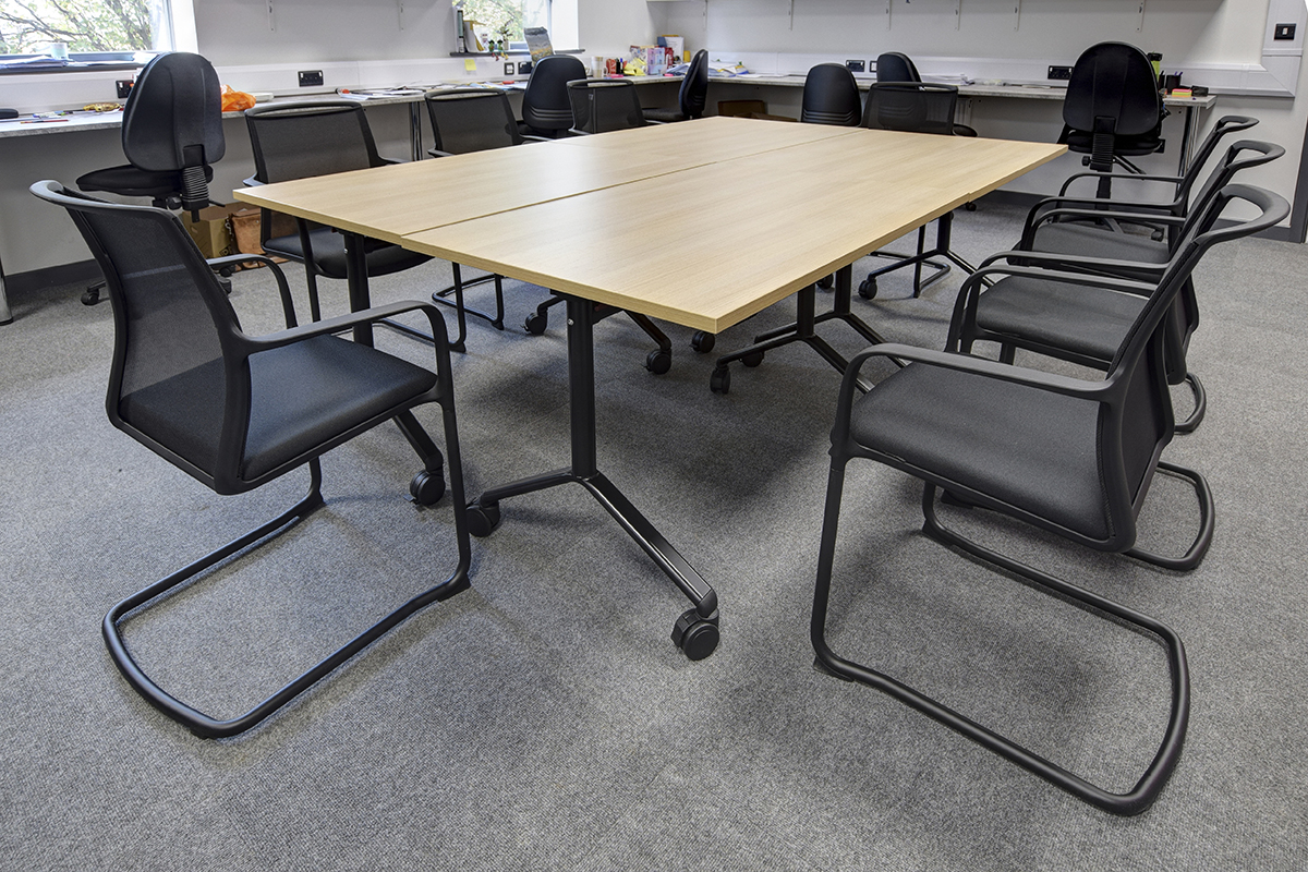 In addition to the canteen and breakout furniture, Flexiform installed a range of Additions 2 tables, flip-top tables and Cyla stackable cantilever frame meeting chairs in staff meeting rooms, providing a flexible and modular meeting space.