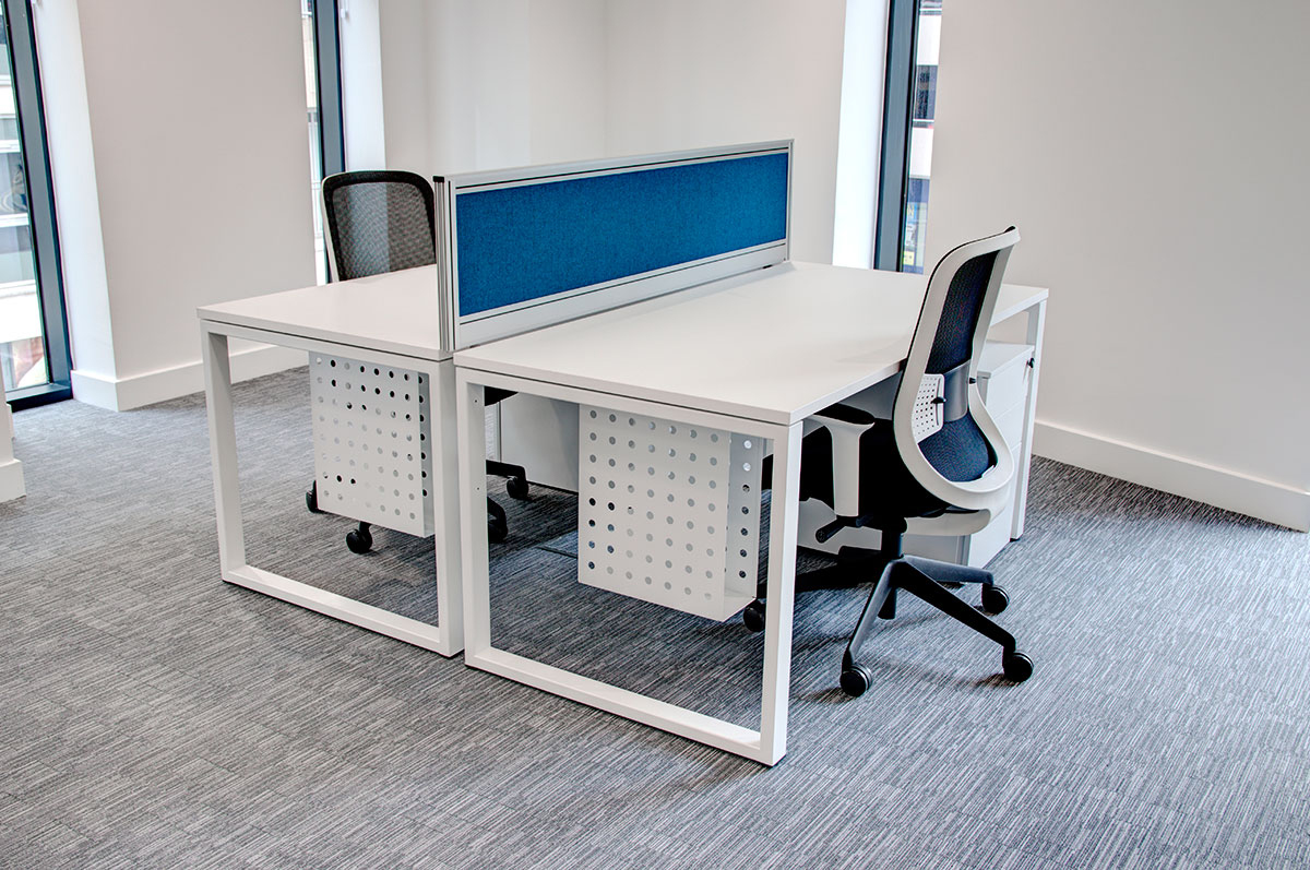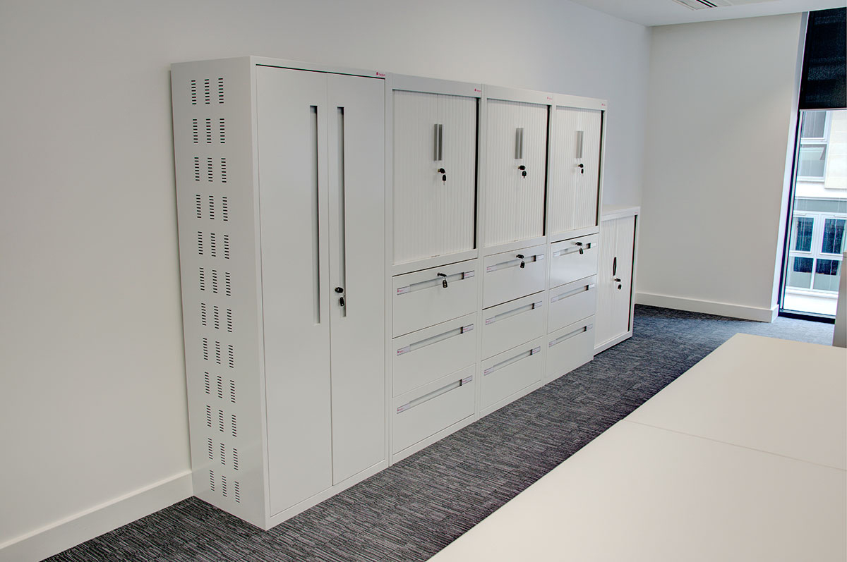 The desking had 370mm-high screens to divide workspaces with CPU holders to keep the design neat, tidy, and easy to use. Our Yorkshire based manufacturing unit and in-house designers worked with Inovo to help create bespoke combination storage units, for more versatile storage based on the client’s developing needs. These units combined a top section with tambour fronts and drawers underneath.