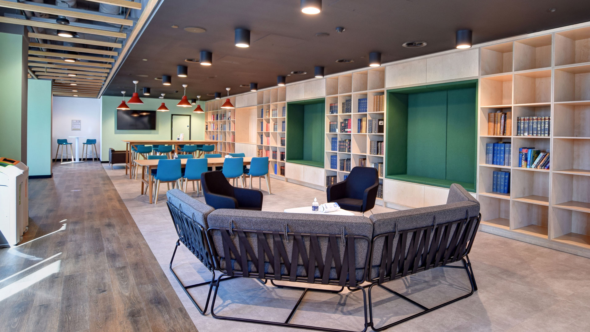 Flexiform has completed the manufacture and installation of contract furniture for the Wilton Centre’s shared communal spaces. Based in Redcar, North Yorkshire, the Wilton Centre is a Science Park home to large brands such as Fujifilm, Honeywell and Mitsubishi Chemicals. With nearly 50 businesses on-site, the Wilton Centre was undergoing significant investment in its shared spaces including its canteen, reception and breakout facilities, managed and transformed by J Mills Contractors. Working with pre-existing plans and a design, we were able to provide a number of visuals, showcasing different furniture options available to the Wilton Centre.