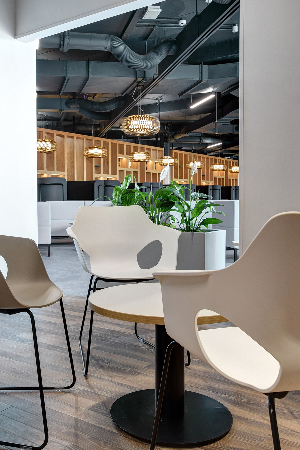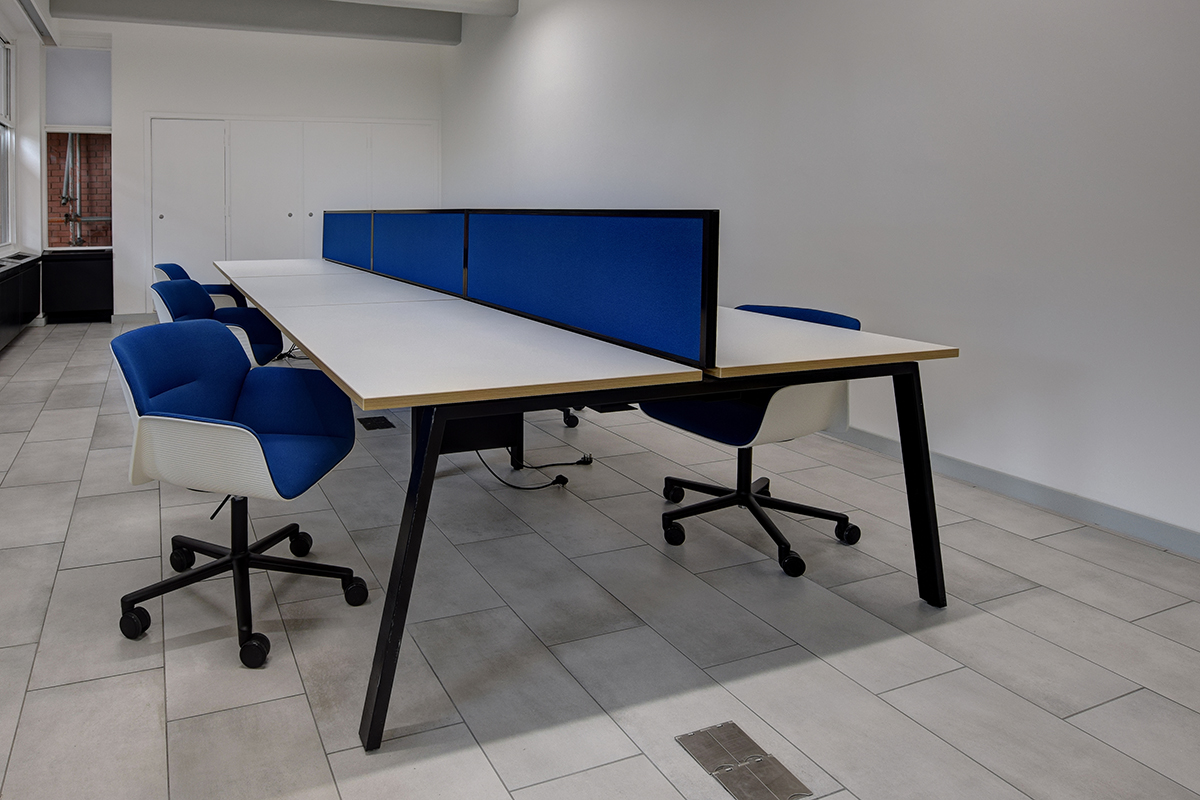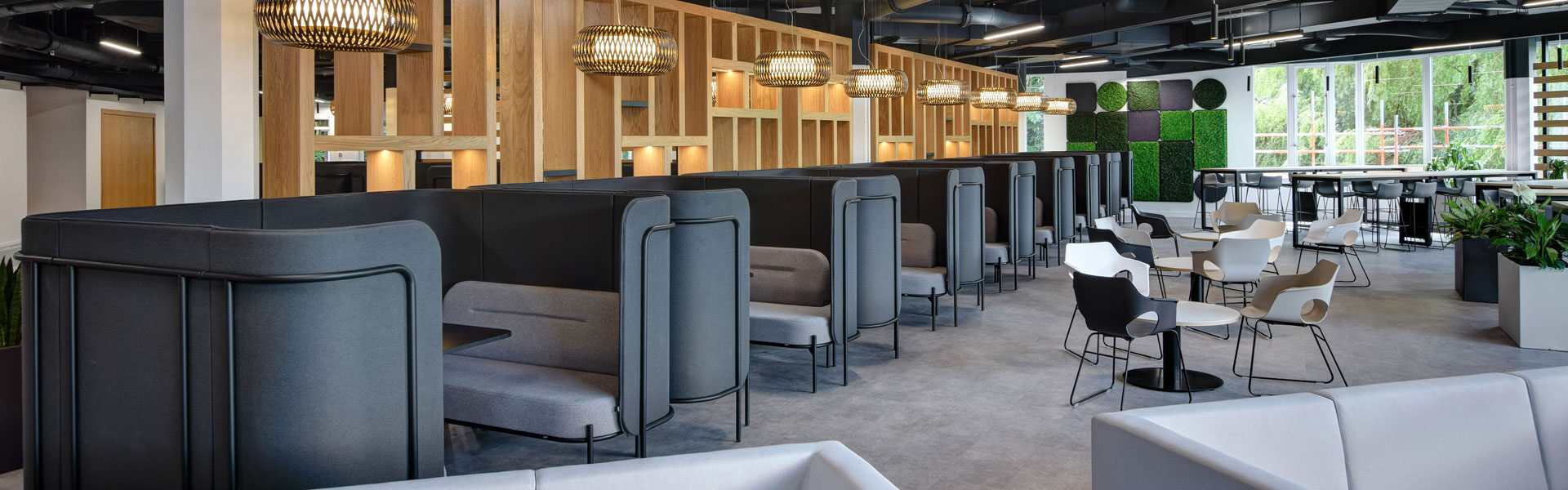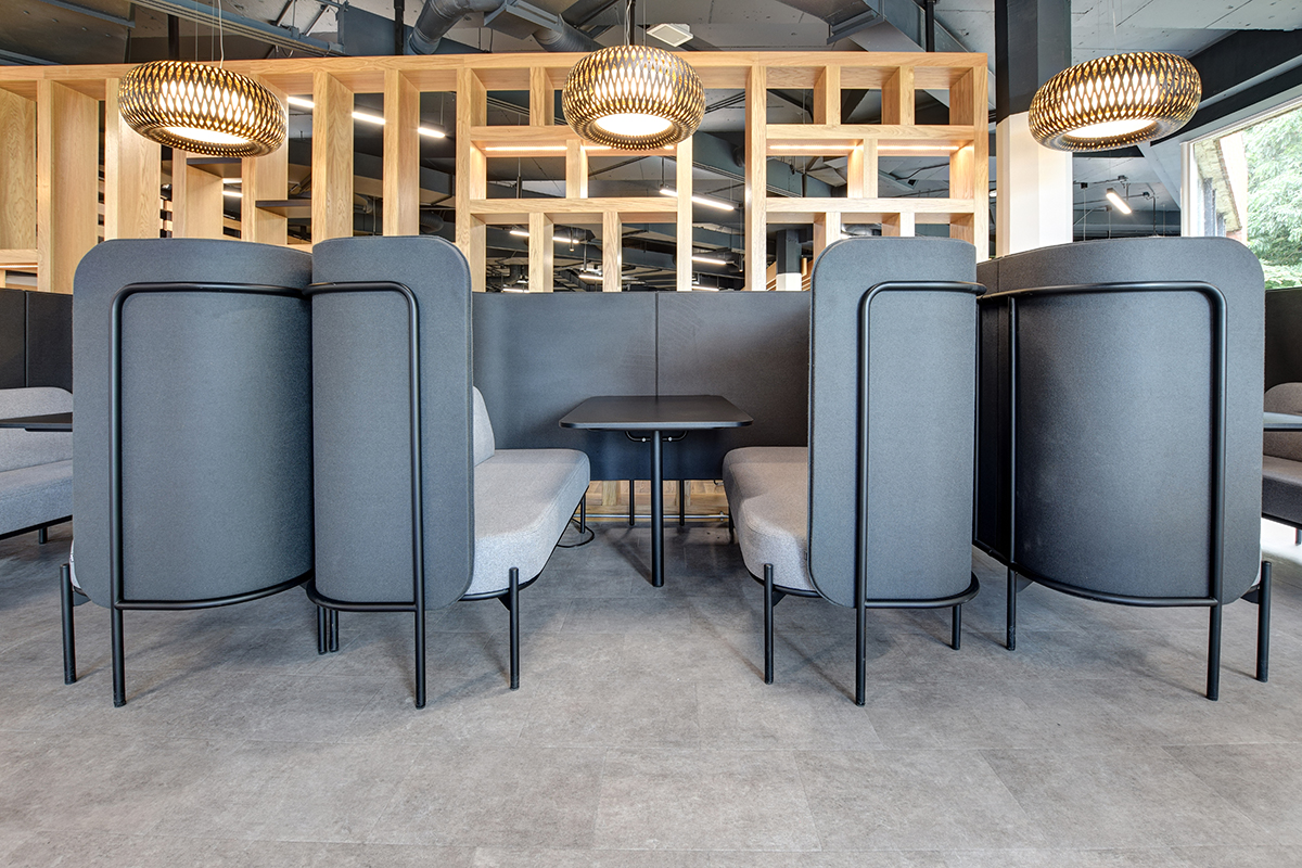 Within the communal areas, we were able to provide a wide range of breakout furniture including mobile pods, high back and low back sofas, media booths and modular sofas matching the agreed interior design and finishes selected. In addition, using our in-house space planning teams to create a number of visuals, we proposed a range of Flexiform office chairs, stools and tables as an alternative.