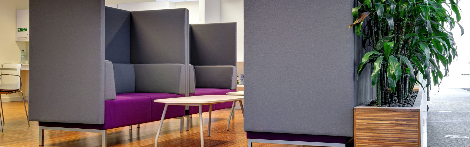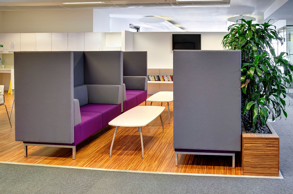 As part of the refurbishment of the Land Registry office in Coventry, Flexiform were successful in winning the tender to expand meeting spaces within this modern workplace. The brief centred around private work booths and high-backed breakout sofas, in order to offer both a comfortable place for quiet working and appropriate meeting space when required.
