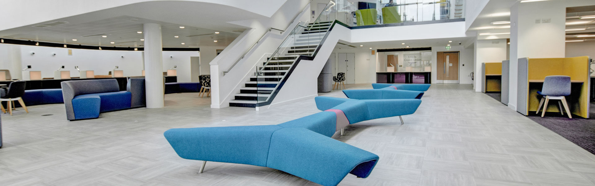 Our in-house Interior Designer and Space Planner designed the installation with particular focus on the atrium and public spaces with modular soft seating, customer service desks, desking and informal meeting spaces. The products and fabric finishes selected are designed to withstand public use and create a wow factor.