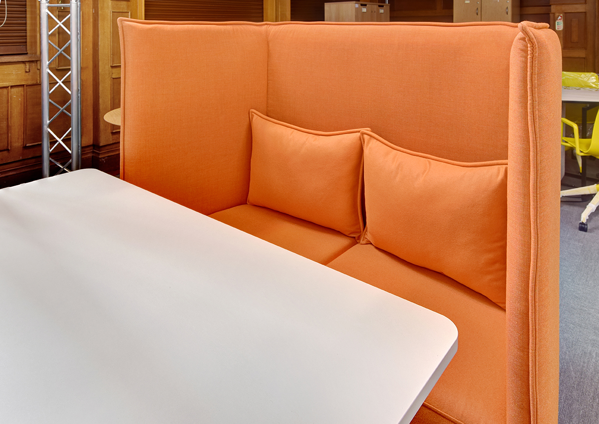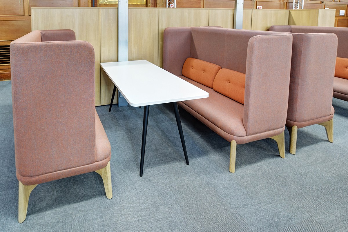 The flexible workspaces expand into a number of high-back meeting booths where teams can split from the main floor plate to meet and collaborate, all equipped with power and data modules so that users can “plug and play”. The mock-up will be used by staff for a number of months and the office furniture selected will become the template for the Town Hall and Civic Centre fit-out.