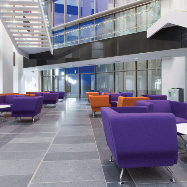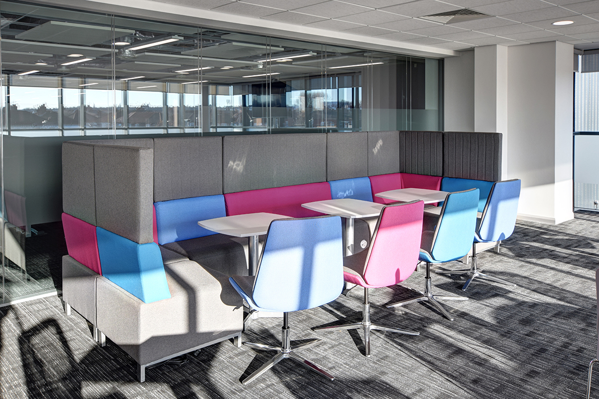 The reception area houses our Additions Pedestal tables and a cluster of soft seating for visitors to sit comfortably during their visit. In addition, the breakout seating and table welfare area has a vibrant mix of products and colours, for dining and relaxing during the working day.
