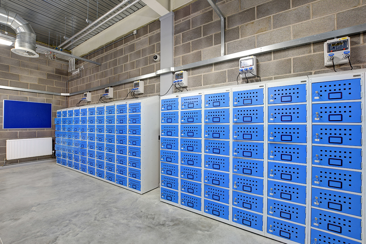 Our Design and Engineering Team created a bespoke ‘L’ shaped cycle locker, providing two individual lockers with a shelf and full-length coat rail, offering maximum storage within a minimum footprint. These lockers are again fully ventilated to keep coats fresh, featuring digital keypad locks and sloping tops.