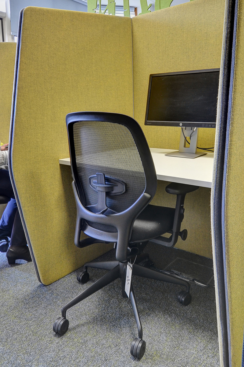 In the collaborative workspaces, the Media Booths, with high backs and a central table, give staff a place to collaborate for semi-private informal meetings or a place to breakout and relax. The additional Quiet Work Pods provide a space to focus and concentrate and is perfect for individual working. In this area you will also find a phone booth, providing a private setting for employees. It improves the efficiency as it reduces distractions whilst the other staff work.