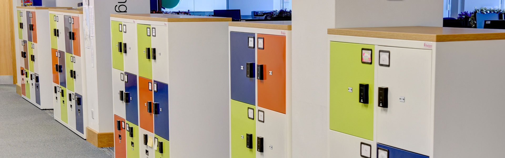 Monitor needed 1322mm high lockers with 6 lockers in each (4 doors and 2 drawers) and there would also be a requirement for some of these lockers to have a single drawer at the bottom to provide a Team Storage element. RFID locks and random colour patterns to the doors were also requirements. All of this was dependent on the removal of existing storage cabinets of a similar height, which these lockers would replace. The project was over 4 floors, and deliveries would be phased over a 3-month time frame, during weekends.