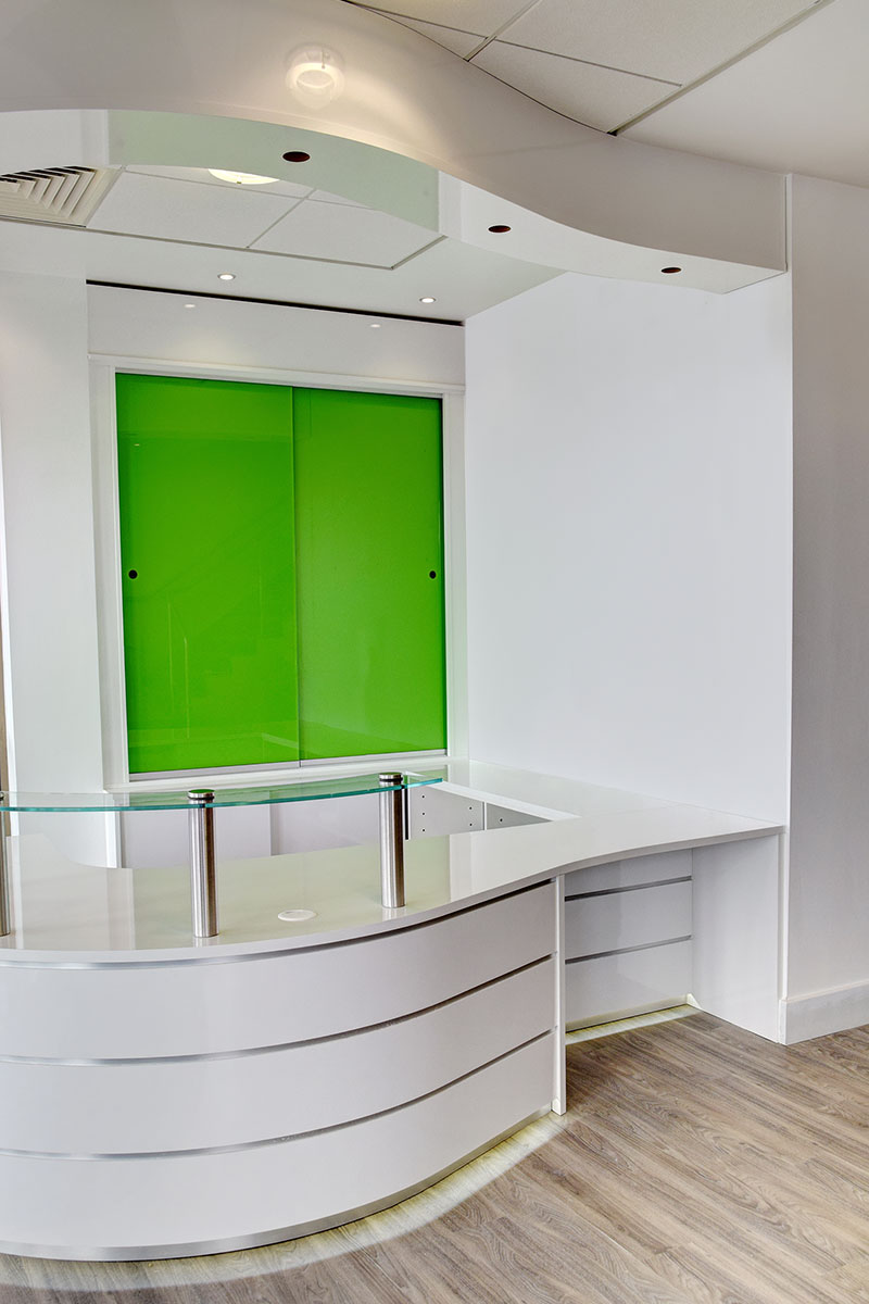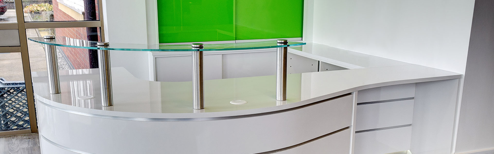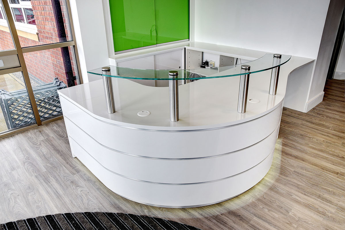 As part of ongoing refurbishment projects with NHS Business Services Authority, Flexiform installed a reception counter into the newly refurbished offices in Middlebrook. The curved reception counter was constructed from laminate and features cable management for IT, a kick plate and a raised glass surface, making it ideal for all users.