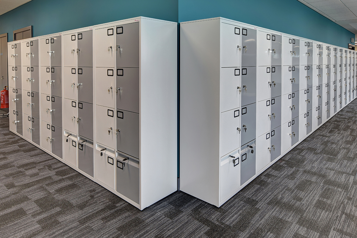 To increase staff wellbeing, Jot-Up sit/stand desking was connected to our Pico desk range. This flexible desking system improves staff morale, productivity and well being. The Freestor Accent Lockers were installed providing flexible and accessible personal storage with additional bottom drawers helping to maintain a clean office environment and encourage staff to move and work throughout the building.