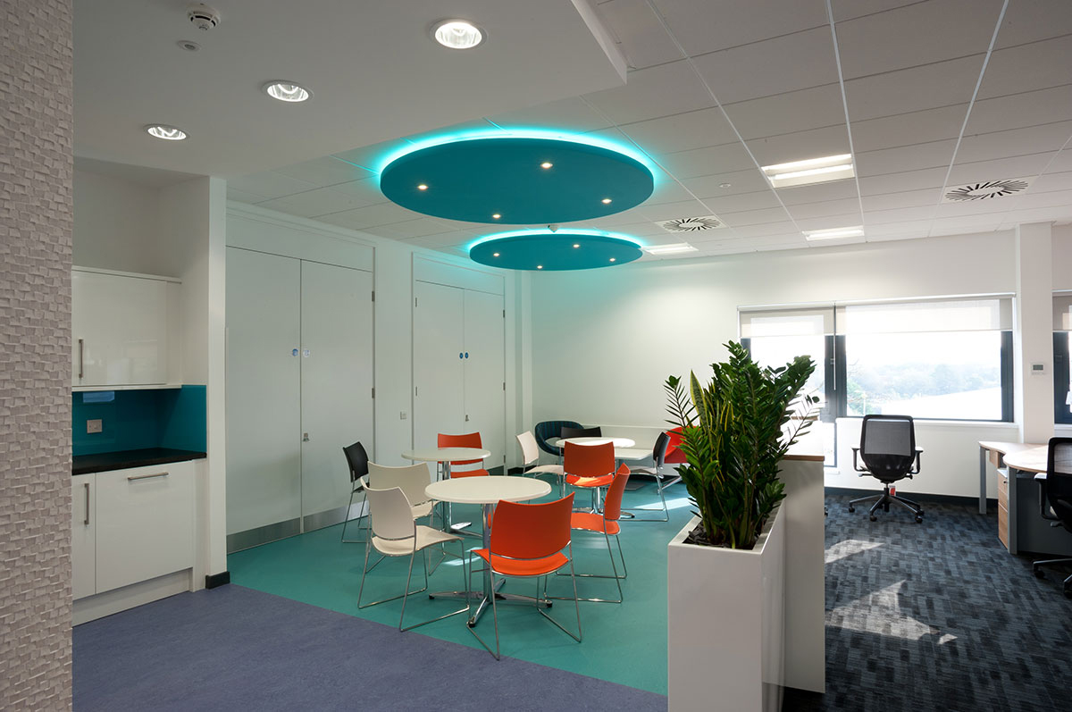 This included desking, executive furniture, boardroom and meeting tables, storage systems, seating, meeting seating, break out seating, and special oval tops on mid-height storage units which could double as layout and standing meeting areas. Flexiform developed and installed a bespoke ventilated laptop docking drawer, so that staff members could place their laptops in the docking station and then close and lock the drawer, keeping them secure. Orange acrylic screens were provided in certain areas to highlight the new hot-desking areas.