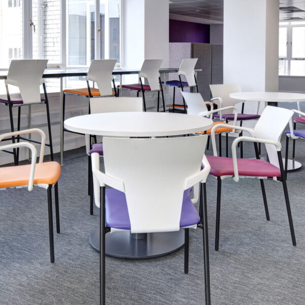 For Scottish Law Commission’s main desking space, we installed a mixture of Pico 120-degree desks, matching back-to-back desk configurations and Jot-Up Lite back-to-back electric sit/stand desks. This collection of workspaces gave the staff ample space with the 120-degree desks being particularly useful for collaborating due to users center facing aspect. The desks were further extended on each side with useful low tambour storage, allowing easy access to secured files whilst also providing more space for printers and filing.
