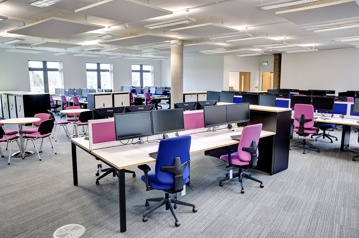 Flexiform tendered for the design, manufacture, fit-out and installation of furniture for this new purpose-built council office in Towcester. South Northamptonshire County Council were looking for innovative designs to assist different departments to make the best use of the limited floor space available and provide a pleasant working environment that included limited document storage and breakout areas for staff.