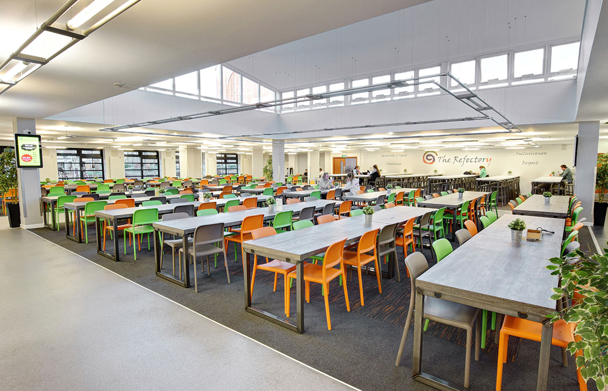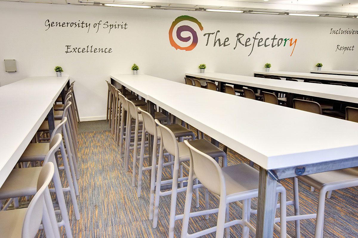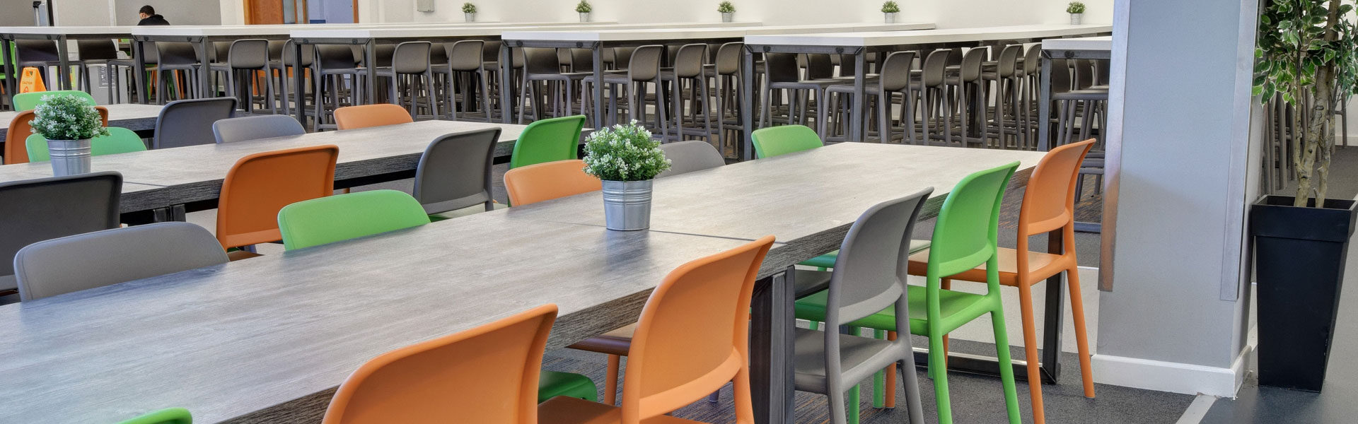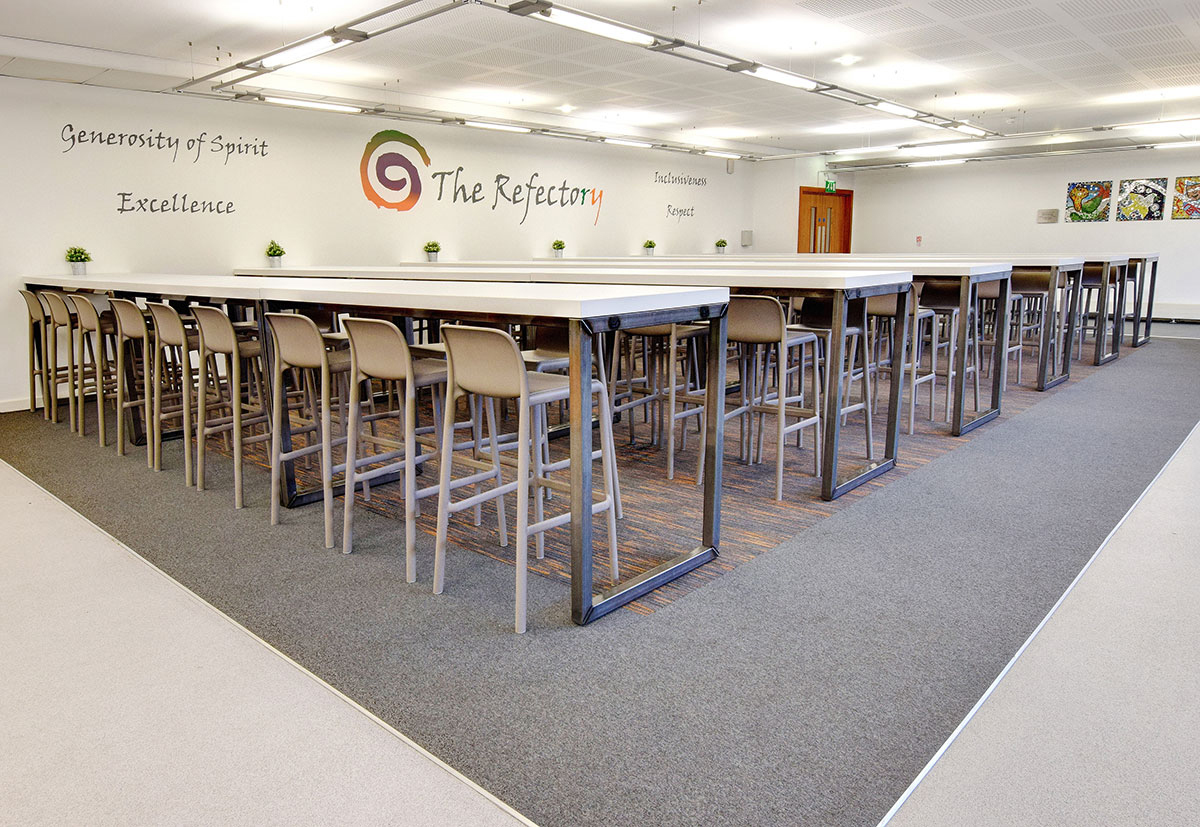 Working alongside Sussex-based furniture specialist European Office Products, Flexiform provided furniture in the main refectory at St Mary’s University. The brief required was simple – create a minimalist, industrial-style look to the newly refurbished refectory. The brief required furniture to be resilient and durable to withstand the high footfall in a dining area, such as a busy refectory.