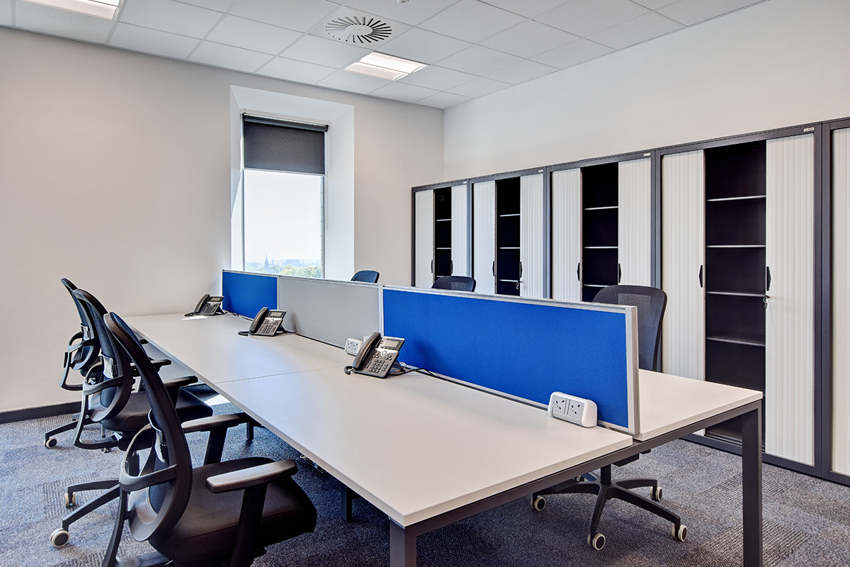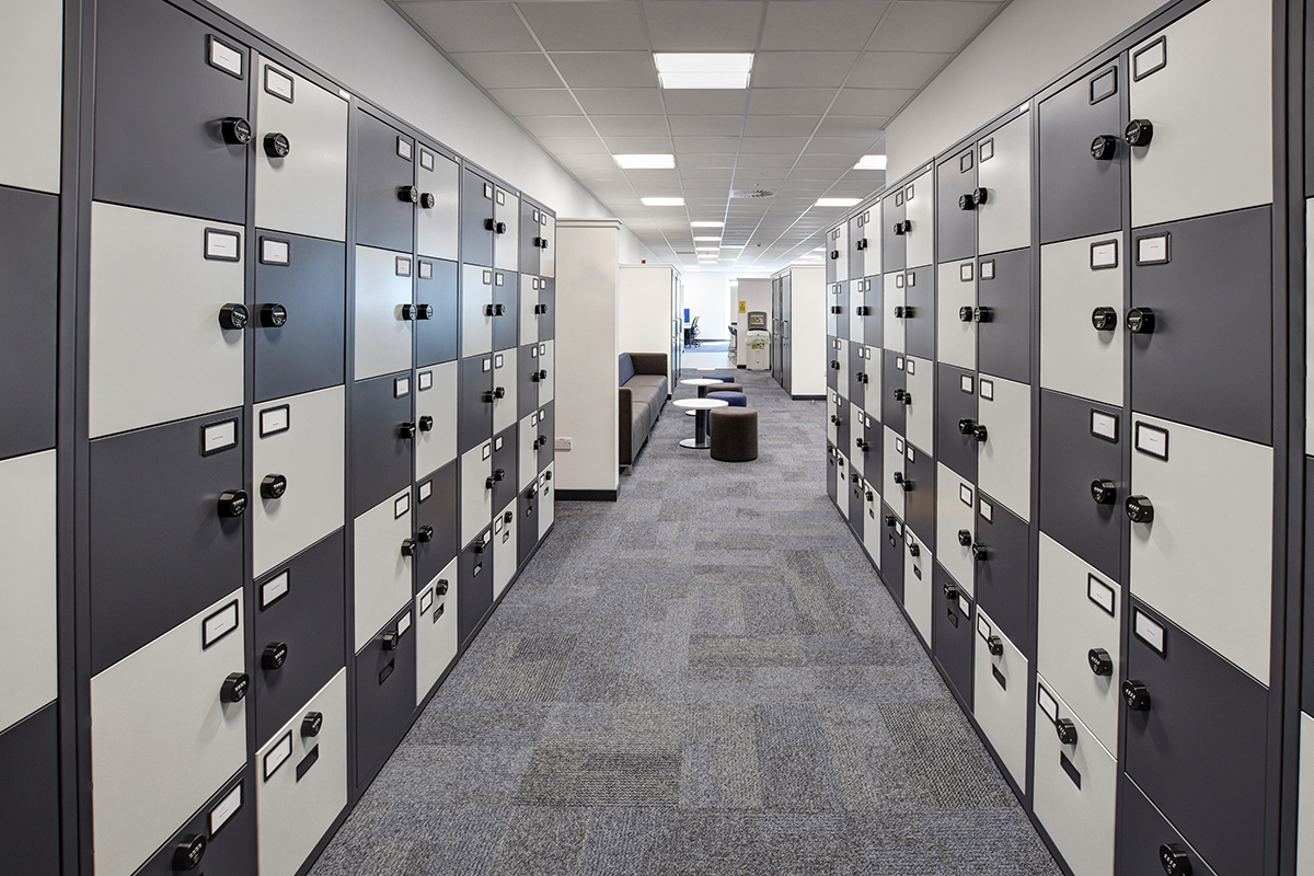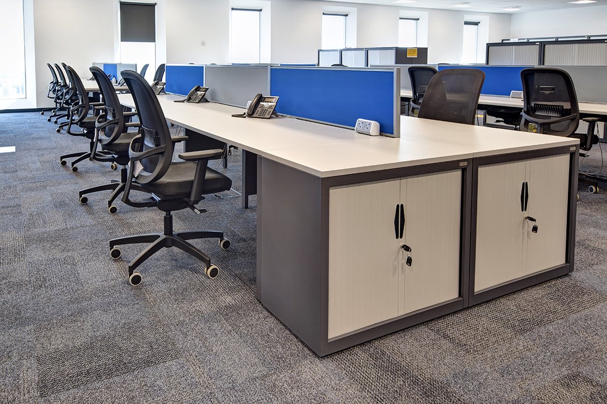 During the project, we helped supply and manufacture the office furniture to their new estate design standards and finishes. This includes our Pico bench desks, a desking range designed with facilities management in mind – with a comprehensive cable management system and sliding tops to access the electrics, the Pico range provides maximum access to power and data. The main office desks were completed with desk mounted privacy screens, on-desk power modules and Equity mesh back task chairs for a full ergonomic set-up. A range of Freestor tambour storage units were installed at various heights with standard plain shelves and bespoke lockable compartments for confidential project-specific materials. In addition, we installed our Freestor Accent Lockers with bottom drawers, labels and secure combination locks for staff to store personal belongings.