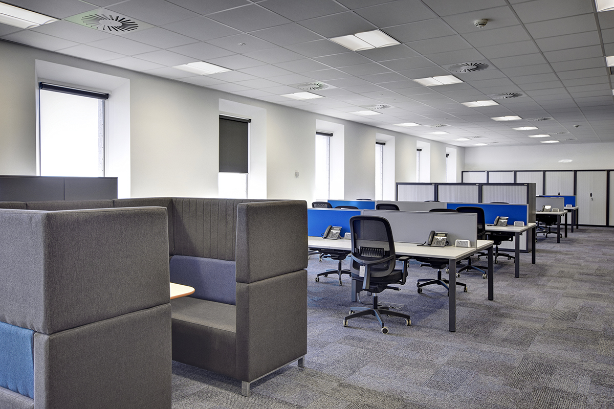 Flexiform has completed an office furniture installation for The Galliford Try Group & Morrison Construction’s Major Blue Light client in Scotland, transforming their workspace with bench desks, bespoke storage and informal and formal meeting spaces. Due to the confidential nature of their work, the open-plan office design was more traditional as each staff member required an assigned desk, landline number and secure storage facilities. The installation took place during the global Covid-19 pandemic, and Flexiform went to great lengths to ensure all Government guidelines were followed throughout the project.