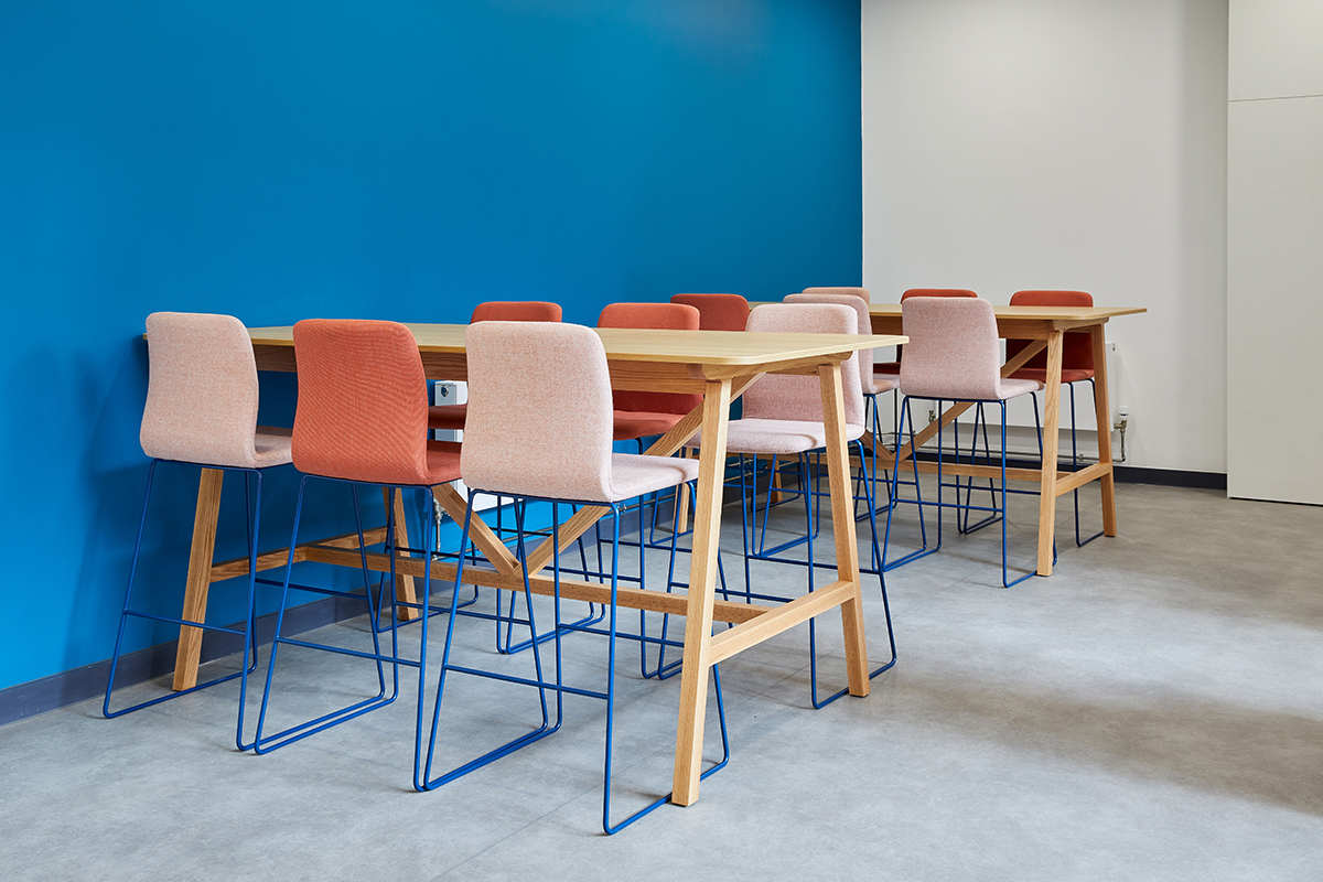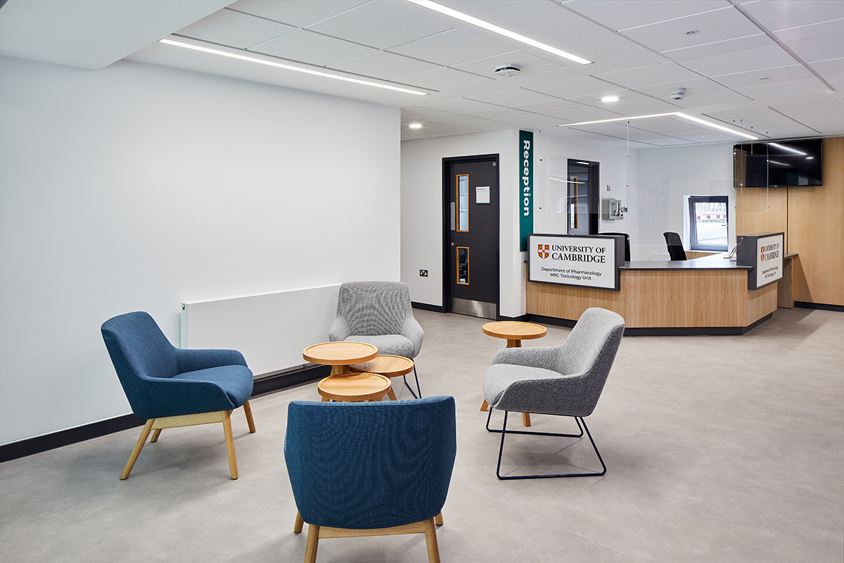 Working alongside the external designer, the focus was on providing a write-up space where students and researchers could come to after completing an experiment in the laboratories. The multi-purpose space was also to be used for admin work and breakout by students. As furniture manufacturers and suppliers, we sourced a range of furniture to achieve this goal and to compliment the design aesthetic both the University of Cambridge and the designer were aiming for.