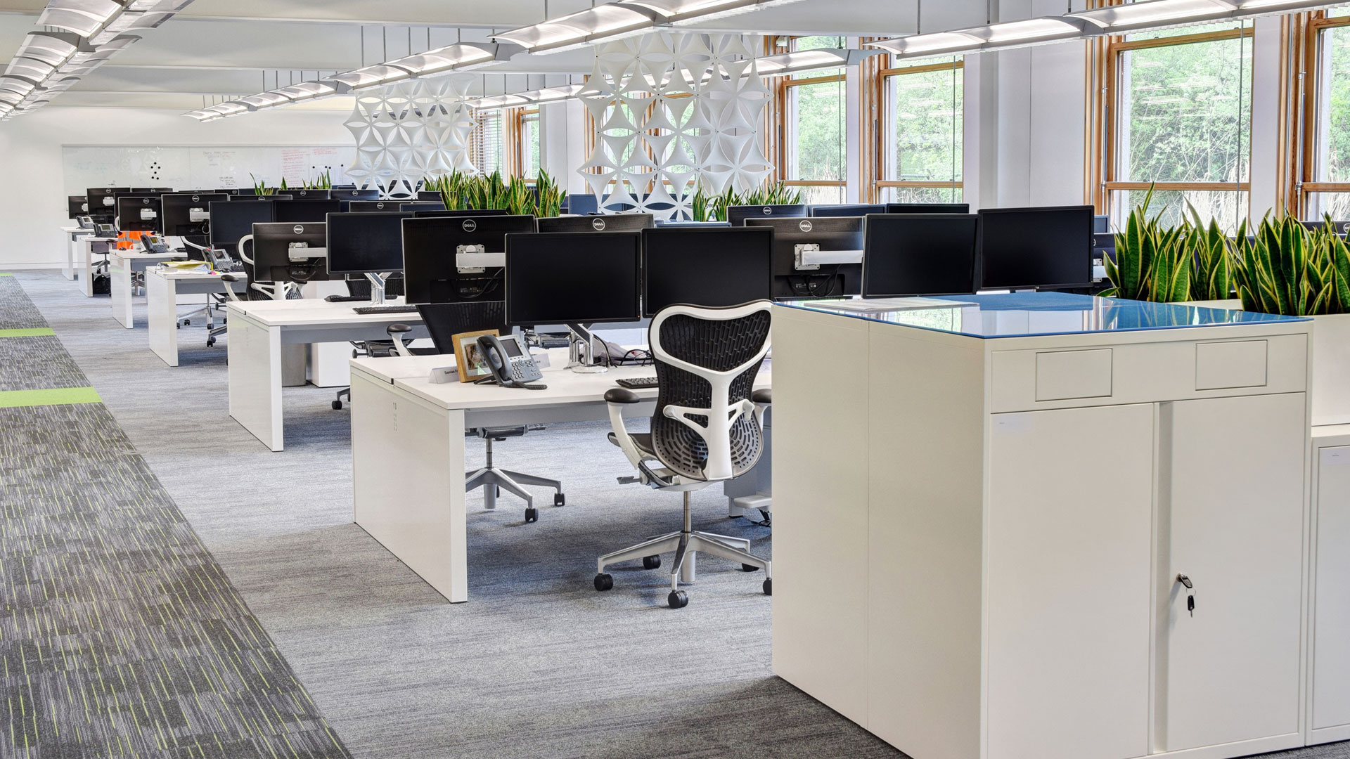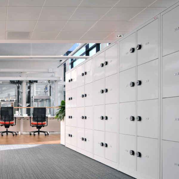 Flexiform partnered with Willmott Dixon Interiors to create their new offices, assisting in walkthroughs and renders, before finalising the full spec ready for manufacture and installation. The refit and installation took place across all five floors of their London headquarters. The floors boast an array of different furniture, including personal lockers with bespoke vinyl graphics, meeting tables, freestanding acoustic panels and more. The furniture has been styled to open up the floors, whilst creating more variety of habitat for collaboration space, as well as solo working.