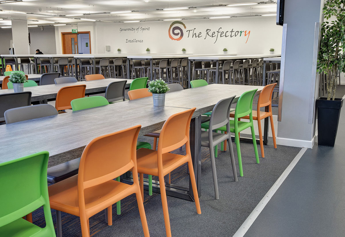 One-Shot Stools & Ferro Bench Tables at Collingwood College Canteen
