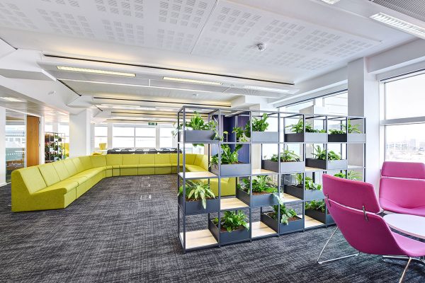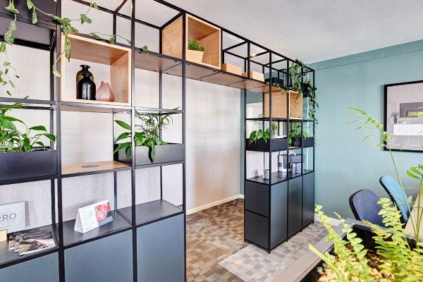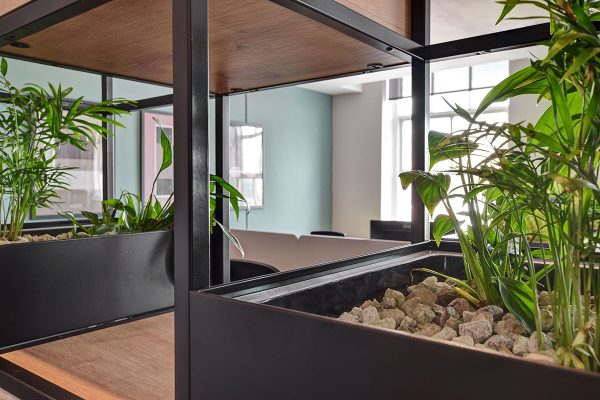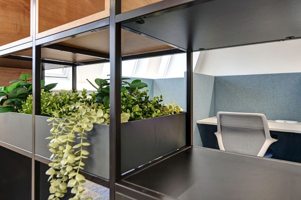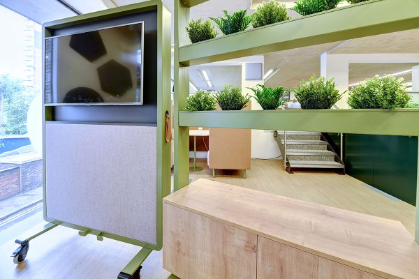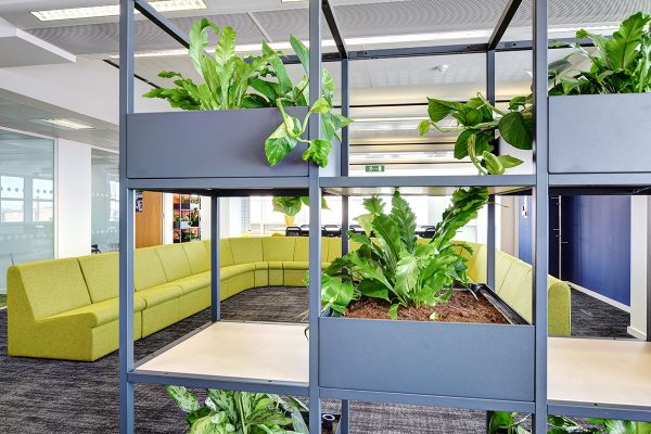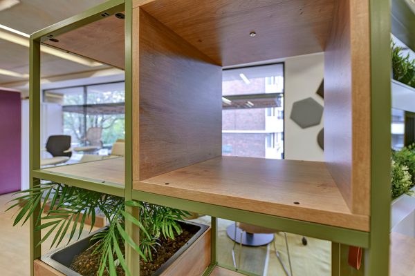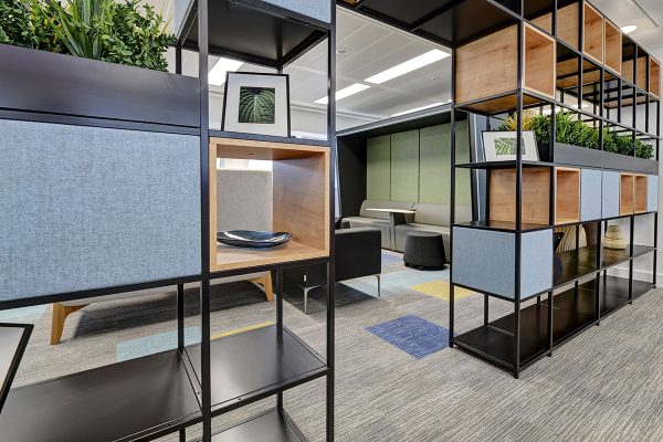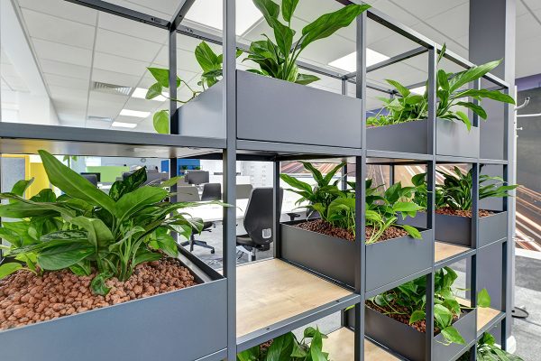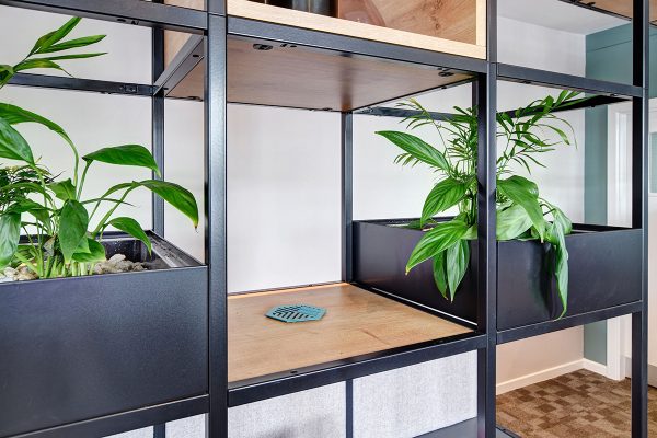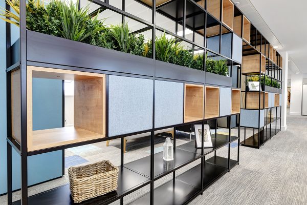 FlexiGrid Shelving with Planters, Cubbies & Acoustic Panels