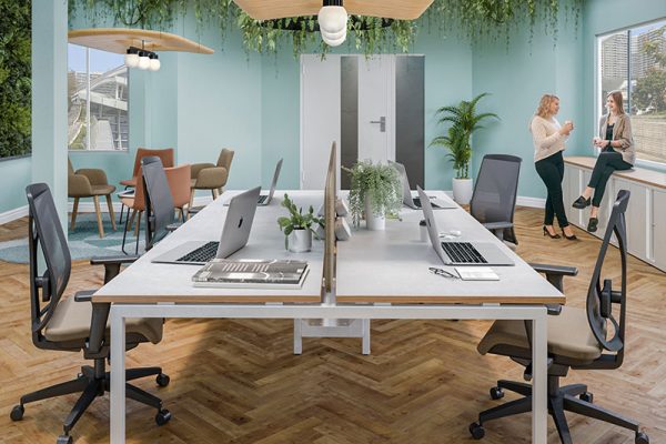Ventillo Task Chair, FlexiGrid Shelving, Meira Office Desk & Aero