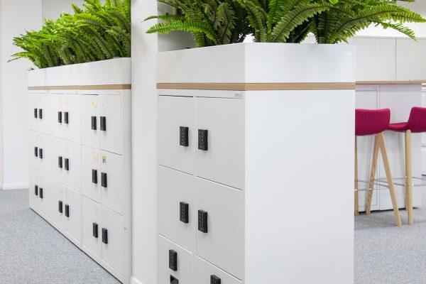6 Door Metal Locker with Storage Top Planter at NOC Office Fitout